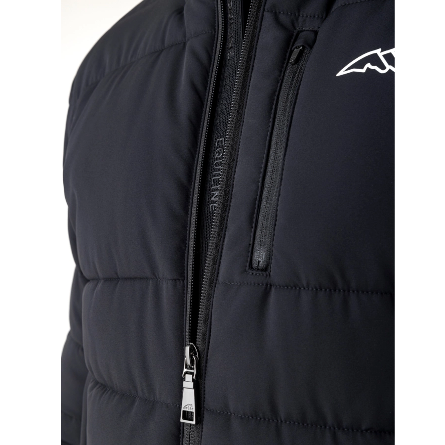 - Con un logo estampado en el pecho y un sutil logo acolchado en la espalda, es una prenda sencilla y versátil que se adapta fácilmente tanto al uso en el establo como en la calle.