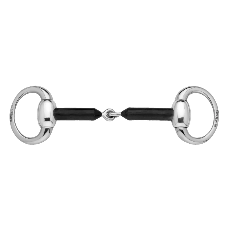 Barra simple articulada de carbono. Actúa principalmente en las orillas de la lengua. Las argoollas Eggbutt pequeñas son especialemtne buenas para caballos con labios sensibles y evita que se machuquen los labios.