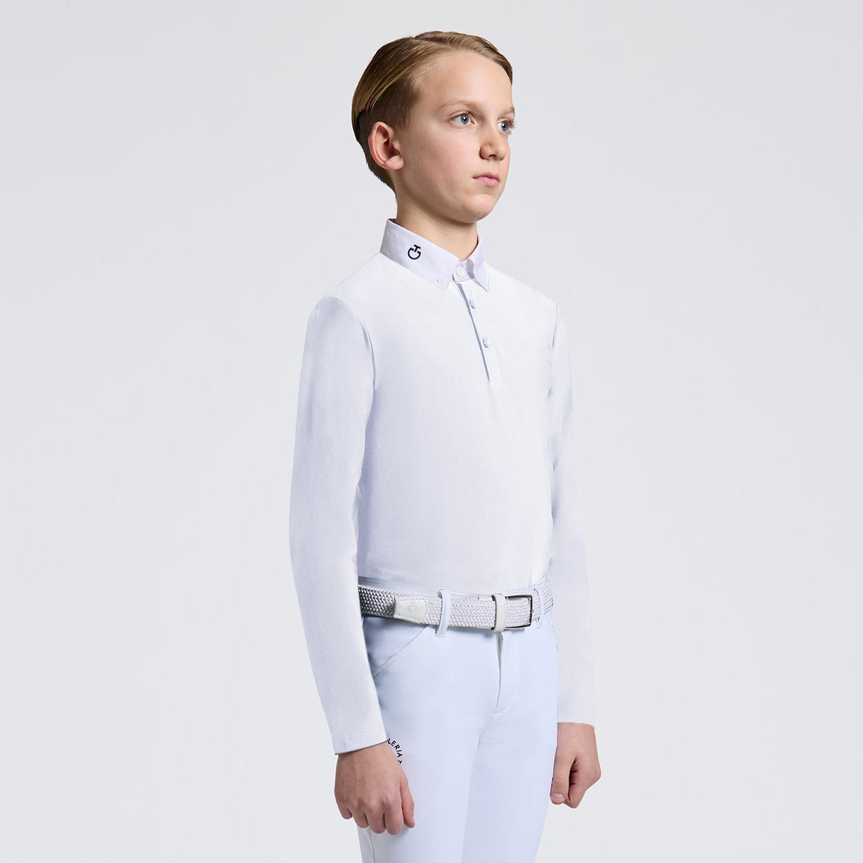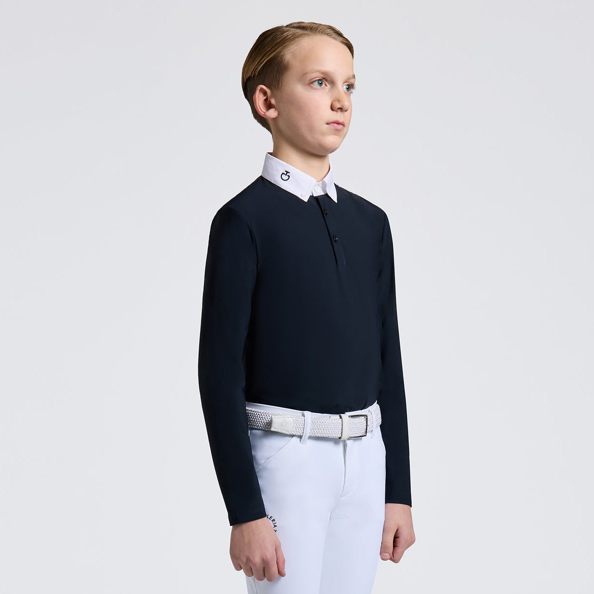 - La camiseta de competición de manga larga Cavalleria Toscana para niño con cuello de popelina está diseñada para ofrecer a los jóvenes jinetes el equilibrio perfecto entre elegancia y funcionalidad.