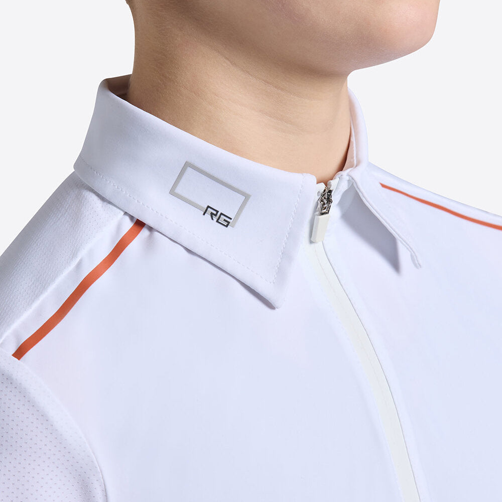 - Diseñado para jóvenes jinetes, este polo de competición Rider's Gene combina transpirabilidad y rendimiento con un diseño elegante.